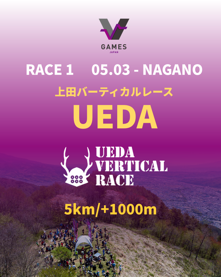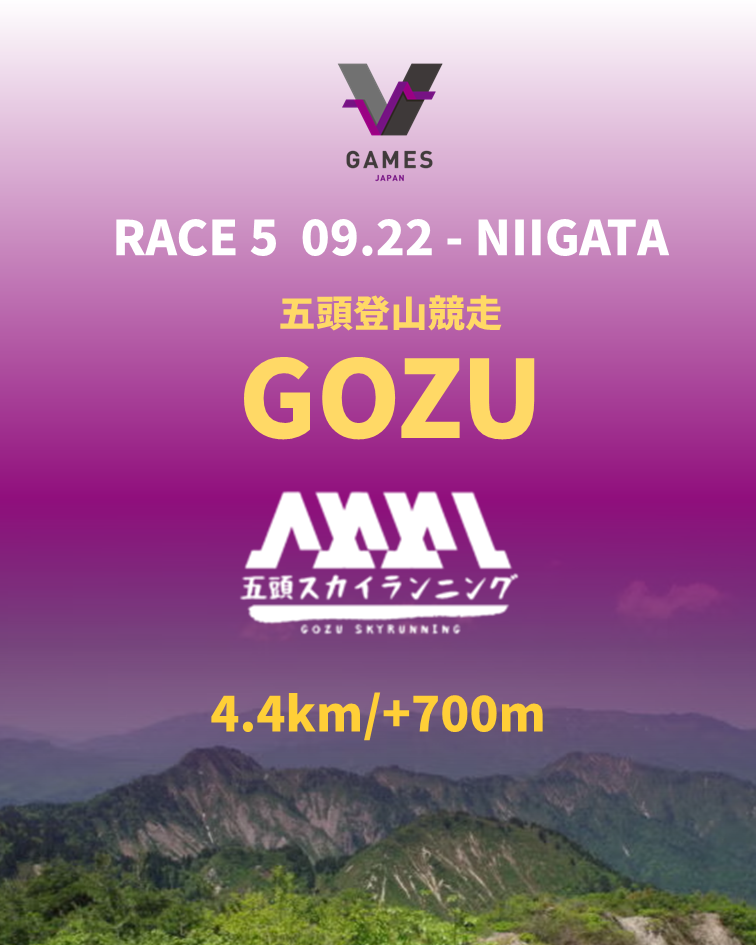 『V GAMES JAPAN』は日本独自のバーティカル(登山競走)の国内シリーズ戦です。4戦(3戦+最終戦)の獲得ポイントでシリーズランキングを決定します。山頂を目指して自由に駆け登る(RUN FREE TO THE TOP OF MOUNTAIN)スカイランニングの原点がここにあります。地域のシンボルの頂を目指して、100年以上前から開催されてきた歴史ある日本のバーティカル(登山競走)。『V GAMES JAPAN』により、新時代のスポーツとしてひとつに束ね、先人たちが築いてきた日本の登山文化を未来へと発展・継承していきます。
